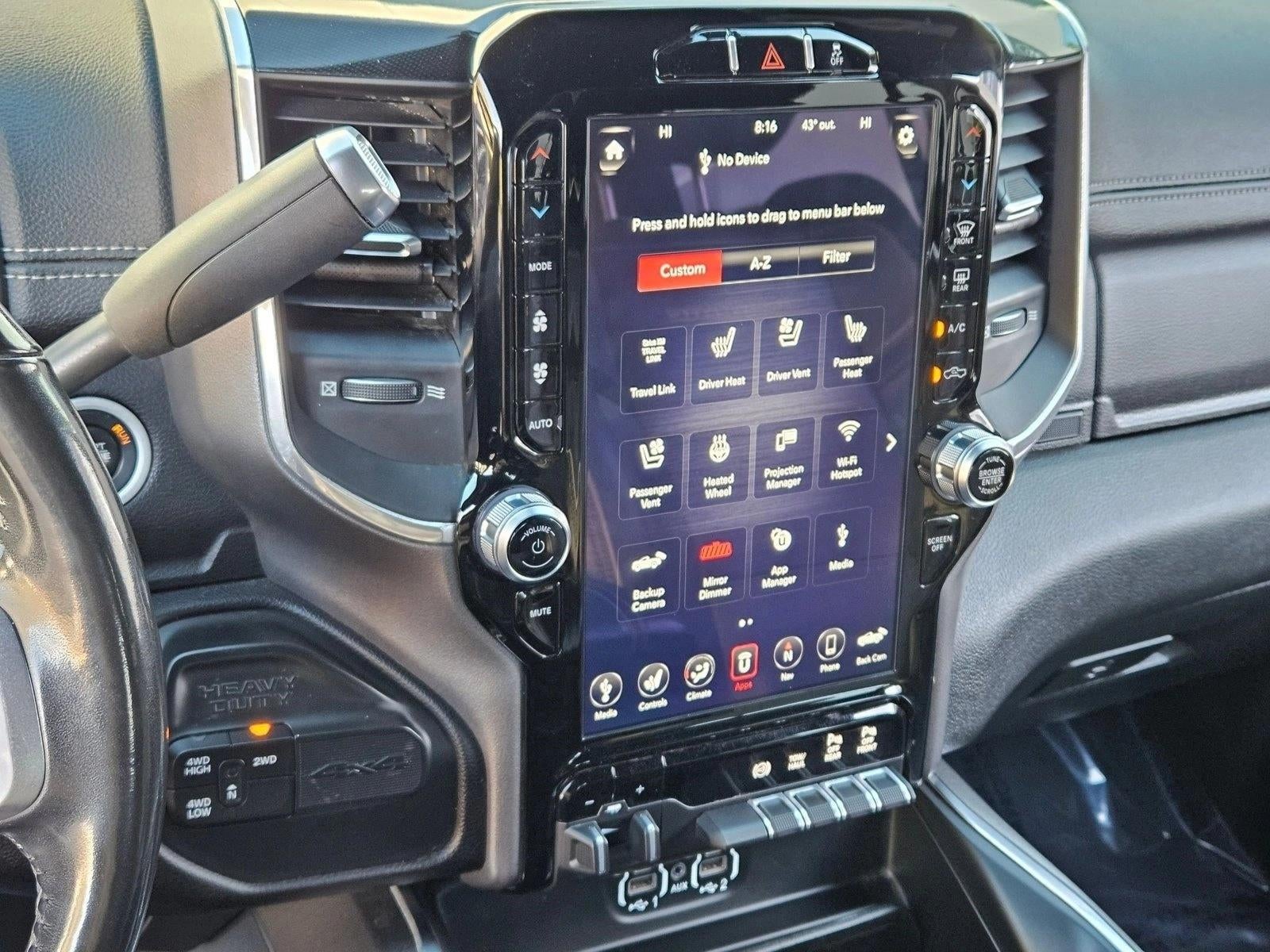 - BLACK, LEATHER TRIMMED BUCKET SEATS -inc: Bucket Seats, Power 2-Way Passenger Lumbar Adjust, Power 2-Way Driver Lumbar Adjust, Full Length Upgraded Floor Console w/A67-inc: Ramcharger Wireless Charging Pad (GJX9)